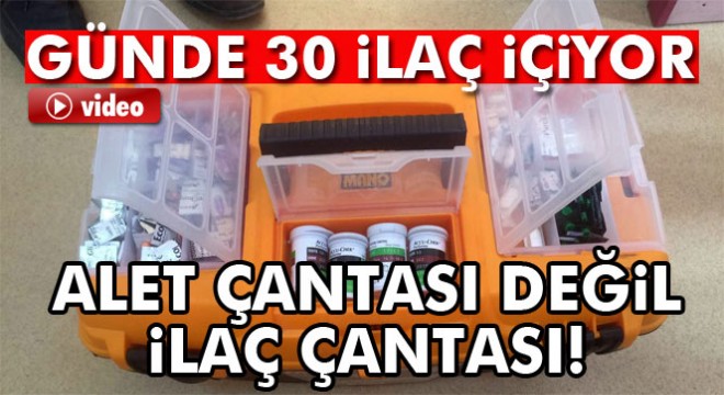 Zonguldak'ın Alaplı ilçesinde yaşayan İsmail Türkoğlu, düzensiz beslenmeden dolayı ilaca bağımlı hale gelmesi sebebiyle onlarca ilacın bulunduğu çantayı yanında taşıyor. Alet çantasını onlarca ilaçla dolduran Türkoğlu, görenleri hayrete düşürüyor.