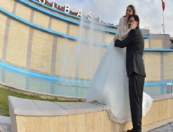 ANKARA / Gölbaşı Belediyesi’nin geçen yıl çalışmalarını tamamladığı şelale, su ve ışık şovlarıyla fotoğraf çektirerek, mutluluklarını ölümsüzleştirmek isteyen çiftlere, görsel bir şölen de sunuyor. Çiçeği burnunda çiftler, “Düğün fotoğraflarımızı bahçede ya da çiçekler arasında çektirmek istemedik. Bu mutlu günümüzü klişe karelerle ölümsüzleştirmek yerine bir şelaleyi tercih ettik” dedi.ANKARA /