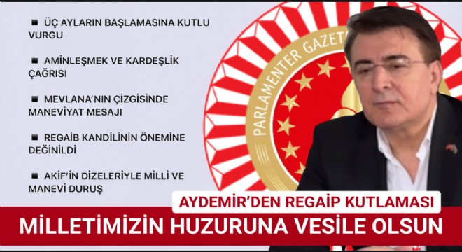 Üç Ayları, “madde planından mana atmosferine geçiş mevsimi” olarak adlandıran Aydemir, bölücü terör musibetiyle mücadele edilen bu günlerde, birlik ve dirliği tehdit eden fitne ve fesada karşı durmanın önemine değinerek, “Rabbim bizi güçlü ve diri tutsun, yüce milletimizi asil duruşundan bozmasın duasında birleşmeliyiz.” çağrısında bulundu.