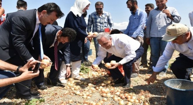 Gıda Tarım ve Hayvancılık Bakanı Ahmet Eşref Fakıbaba tarım işçileriyle birlikte soğan topladı.