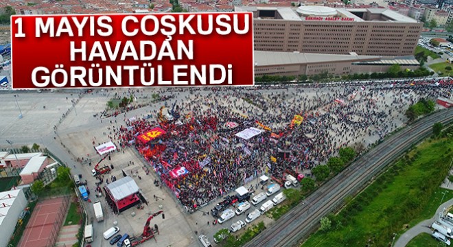 Görüntülerde 1 Mayıs coşkusunu yaşamak isteyen binlerce kişinin alanı doldurduğu görülüyor.