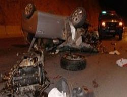 Bariyere çarpıp takla attı