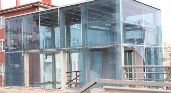 Dikmen Vadisi’ndeki çelik köprünün 2 asansörü de tahrip edildi. Camları kırılan ve elektrik kabloları çalınan asansörler, madde bağımlılarına mesken oldu.
