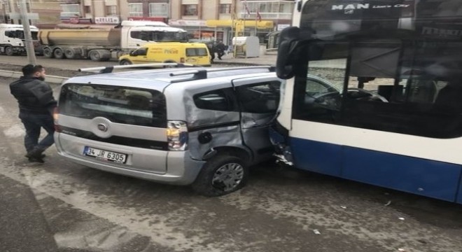 Geri dönmeye çalışan otomobile belediye otobüsü çarptı