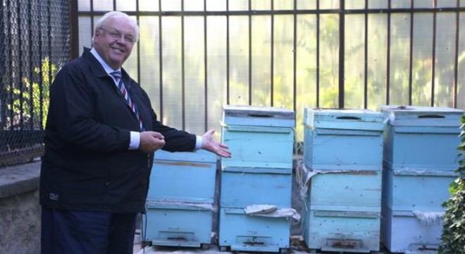 Arıcılık faaliyetimiz tam bir yıl önce başladı. Büyükelçilik bahçe şefimiz Hasan Altın’a organik tarım alanında bir katkıda bulunmak istediğimi söyledim. Bunun üzerine iki arı kovanı kurduk ve çalışmamıza iki arı ailesiyle başladık. Buraya getirdiğimiz arıcı o kadar etkilendi ki, ilk balı hasat ettikten sonra ‘Bugüne kadar hiç bu kadar güzel bir bal görmedim’ dedi. İlk hasatta toplam 20 kilogram bal elde ettik ve bunun satışını büyükelçilikte gerçekleştirdik. Balımızı ‘Alman balı’ olarak tanıttık. Bu kadar büyük bir başarıdan sonra bu yıl arıların sayısını arttırdık ve iki kovan daha getirdik. Önümüzdeki sene toplam altı arı kovanı kurmayı hedefliyoruz. İşin ilginç yanı, Berlin’deki Türkiye Büyükelçiliği’nin çatısında da 2011’den beri bal üretiliyor ve o balı Almanlara satıyorlar. Yani karşılıklı olarak bal ve arı diplomasisi yürütüyoruz.