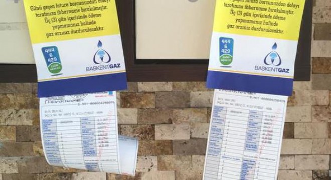 Posta kutularına yapıştırılan etikette, “Değerli Müşterimiz; Günü geçen fatura borcunuzdan dolayı tarafınıza ihbarname bırakılmıştır. Üç(3) gün içerisinde ödeme yapmamanız halinde gaz arzınız durdurulacaktır” notu yer alıyor.