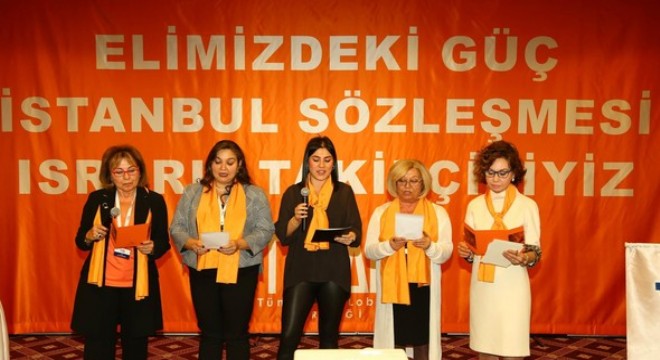 TÜKAL üyeleri, ‘İstanbul Sözleşmesi’nin en önemli maddelerini okuyarak, kadına karşı şiddetle mücadele alanında çalışacaklarına dair söz verdi.