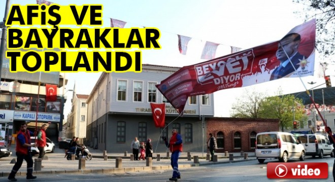 Seçim yasaklarının başlamasının ardından referandum propagandası için caddelere meydanlara asılan bayrak, pankart ve afişler toplanmaya başladı.