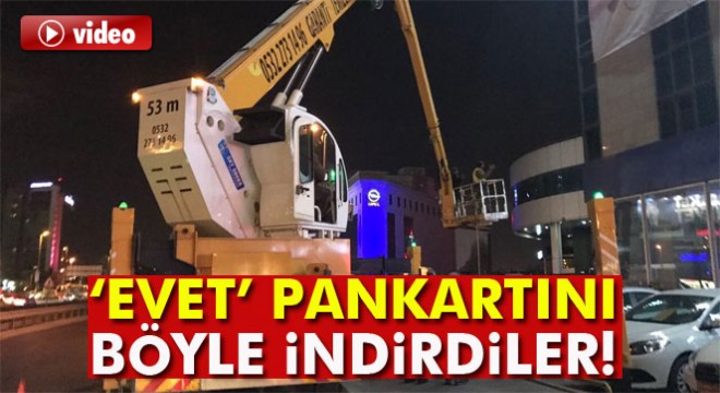 Saadet Partisi İstanbul İl Başkanlığının bulunduğu iş merkezine asılan ‘Evet’ pankartı partililerle indirildi. Pankartın indirilmesi anı ise bir cep telefonu tarafından görüntülendi.