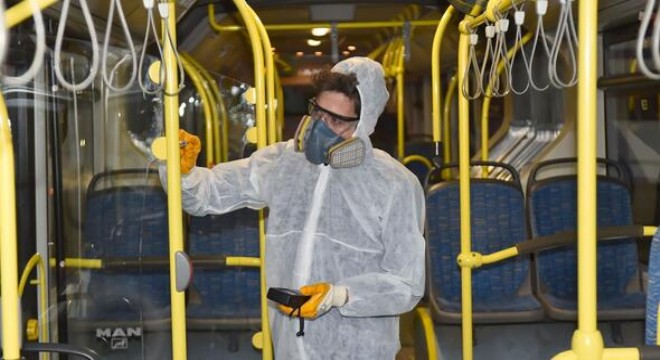 ATP bakteri ölçüm cihazı ile kontrol edilen otobüsler, tespit edilen olumsuz değerler sıfırlanana kadar ilaçlanıyor. İlaçlama çalışmaları otobüslerin servis dışına çıktığı gece saatlerinde Çevre Koruma ve Kontrol Daire Başkanlığı ekipleri tarafından yapılıyor. Otobüslerin iç kısmındaki yolcu koltukları başta olmak üzere koltukların arka-alt kısımları, düğmeler, yolcu tutamakları, cam kenarları ve havalandırma kapakları dip köşe ilaçlanarak, salgın hastalıklara yol açabilecek virüslere karşı dezenfekte ediliyor. Dünya Sağlık Örgütü (WHO) ve Sağlık Bakanlığı tarafından onaylı, çevre ve insan sağlığına zarar vermeyen kokusuz ürünlerle yapılan ilaçlama çalışmaları düzenli olarak gerçekleştiriliyor. İlaçlama çalışmalarının yanı sıra toplu taşıma araçlarında temizlik ve yıkama çalışmaları da yapılıyor.