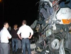 Yolcu otobüsü tankere çarptı