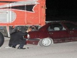 Yolda kaza olduğunu geç farkeden 06 TUT 93 plakalı otomobilin sürücüsü Ali Çoban ise direksiyon hakimiyetini kaybederek yolda ters döndü ve parketmiş kamyonun altına girdi.