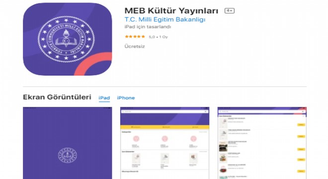 “MEB Kültür Yayınları” adlı mobil uygulamaya Android ve IOS işletim sistemli cihazların mobil marketlerinden erişilebiliyor.