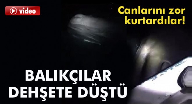 Akdeniz kıyılarında avdan dönen balıkçıların karşısına dev bir balina çıktı. Dehşete düşen 3 balıkçı son anda yaptıkları geri manevra ile hem canlarını hem de tekneyi kurtardılar.