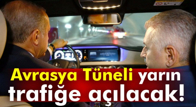Asya ve Avrupa yakalarını deniz altından karayolu ile ilk defa bağlayacak olan Avrasya Tüneli Projesi’nin (İstanbul Boğazı Karayolu Tüp Geçişi Projesi) açılışı Cumhurbaşkanı Recep Tayyip Erdoğan ve devlet erkanından çok sayıda ismin katılımıyla dün gerçekleşti. Tören kapsamında yapılan konuşmalarda Ulaştırma, Denizcilik ve Haberleşme Bakanı Ahmet Arslan, Avrasya Tüneli’nin bugün öğleden sonra hizmet vermeye başlayacağını söylemişti. Ancak, tören için kurulan ekipmanların sökülmesinin planlanandan uzun sürmesi nedeniyle Avrasya Tüneli’nin trafiğe açılışı yarına ertelendi.