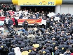 Türk Habersen, Birlik Habersen, Bağımsız Habersen, Haber Sen ve Posta Dağıtıcıları Derneği üyesi bir grup postacı, PTT Genel Müdürlüğü önünde eylem yaptı.