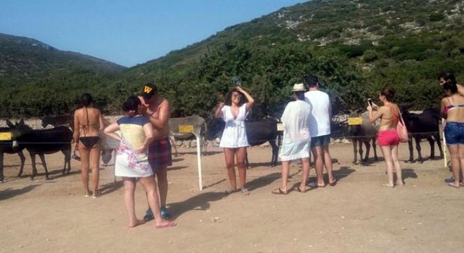 İZMİR’in Çeşme İlçesi yakınlarındaki Karaada Adası’nda yaşayan eşekler, yerli ve yabancı turistlerin büyük ilgisini çekiyor. Tekne turlarıyla adaya gelenler, eşeklerin fotoğraf ve görüntülerini çekip,selfie yapıyor, sosyal medyadan bunları paylaşıyor.