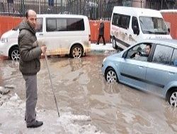 Çankaya Belediyesi, karla mücadelede kendi binasının arka sokağını unuttu. Halk ve Marmara sokaklarında temizlenmeyen karların erimesine, tıkanan rögarlar da eklenince bölge suyla dolup taştı.