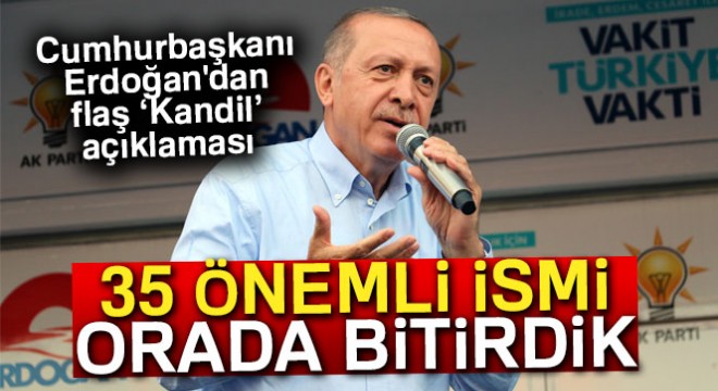 Cumhurbaşkanı Erdoğan AK Parti Kahramanmaraş mitinginde halka hitap etti ve burada çok önemli açıklamalarda bulundu. Kuzey Irak'taki operasyonla ilgili açıklamalarda bulunan Cumhurbaşkanı Erdoğan, "Kandil’i 20 uçakla 10 önemli noktayı ve bunların liderler toplantısını yakaladık. İkinci operasyonda o liderler toplantısında 35 tane önemli isimi orada bitirdik. Biz sizin gibi Amerika’dan gelecek telefonları beklemiyoruz. Kararımızı verdiğimiz zaman adımımızı atarız. Afrin’de işi bitirdi, Cerablus’ta işi bitirdik. Şimdi Menbiç terör örgütünden boşaltılıyor. Orada bizim zırhlı taşıyıcılarımız var.' dedi.