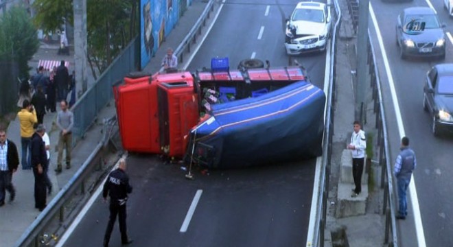 E-5 te meyve yüklü kamyonet devrildi