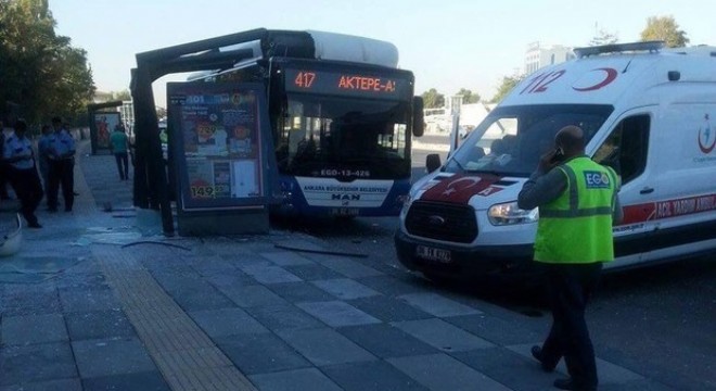 Aktepe-Yüzüncüyıl güzergahında yolcu taşıyan 417 No’lu EGO otobüsü, henüz belirlenemeyen bir sebeple Fatih Köprüsü’nün girişinde bulunan otobüs durağına çarptı.