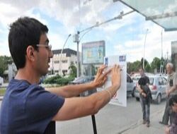 BÜYÜKŞEHİR Belediyesi EGO Genel Müdürlüğü görme engellilerin toplu taşıma araçlarını daha kolay kullanması için kapalı duraklara plakalar yerleştirerek, durak ve güzergah hakkındaki bilgileri Braille Alfabesi (Körler Alfabesi) ile verdi.