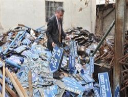 Büyükşehir Belediyesi, eskiyen ve yıpranan sokak levhalarını “geri dönüşüm” yoluyla yeni hale getiriyor. Yenilenen tabelalar ise onarılıp boyandıktan sonra sokak ve kapı numarası olarak kullanılıyor.