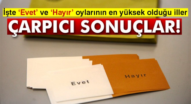 Evet ve hayır oylarının en yüksek olduğu iller