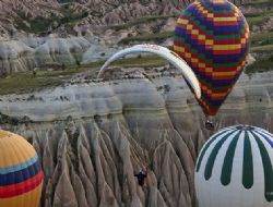 Her sabah rengarenk balonların havalandığı Başkent’in yanı başındaki Kapadokya bölgesi, sıradışı bir rekor denemesine sahne oldu. Sıcak hava balonundan atlayan yamaç paraşütçüleri, havada 126 kez dönüş yaptı.