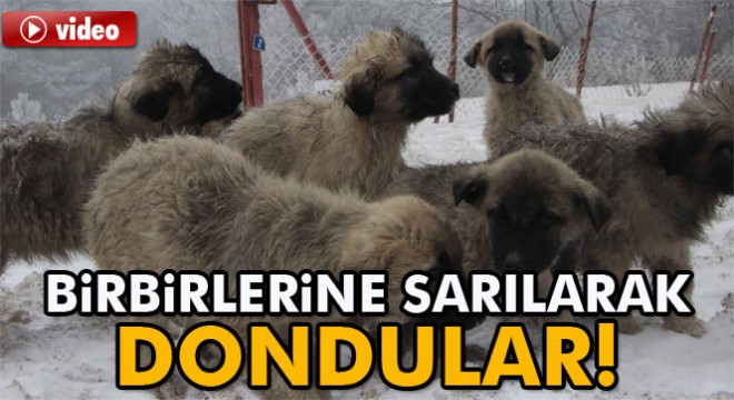 Karda köpekler birbirlerine sarılarak dondu