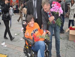 ANKARA / Kızılay AVM’nin önünde Dünya Kadınlar Günü kutlandı. Ankara Çiçekçiler Derneği’nin yaptığı organizasyonda, kadınlara çiçekler dağıtıldı. Ankara Çiçekçiler Derneği Başkanı Tolga Soğukbulak, “Bizi bugünlere getiren kadınların bu özel gününü kutlamak için böyle bir organizasyon yapma gereği duyduk. Bütün kadınların bir çiçek alarak mutlu olmasını istiyoruz” dedi.