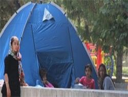 Lozan Park’a sığınarak, naylon ve çarşaflardan yaptıkları çadırlarda yaşayan ...