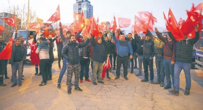 ARAÇLARIYLA konvoy yapan vinç işletmecileri, Mehmetçiğe destek verdi. İvedik Organize Sanayi Bölgesi'nde bir araya gelen vinç işletmecileri, araçlarını Türk bayraklarıyla donatarak, Şehit Yüzbaşı Süleyman Şahin'in Yenimahalle ilçesi Serhat Mahallesi'ndeki evinin önüne kadar birlik ve beraberlik konvoyu düzenledi. Mehmetçiğe destek sloganları atan gruptakilere, vatandaşlar da evlerinin pencerelerinden bayrak sallayarak destek verdi. Gruptakilerden Sinan Kömür, yaptığı açıklamada, şehit olan askerlerin üzüntüsü içinde olduklarını ifade ederek, "Şehitlerimizin ailelerine destek için toplandık. Şehitlerimize Allah rahmet eylesin, ailelerine de başsağlığı dileriz. Biz, 15 Temmuz'da da bu şekilde konvoy düzenledik. Her zaman şehit ailelerinin yanındayız" diye konuştu.