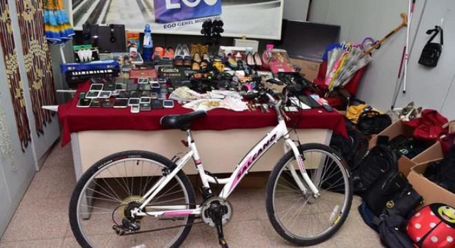 yalar, yarın satışa sunulacak. Unutulan eşyalar arasında altın, Türk Lirası ve döviz cinsinden para da bulunuyor. Her gün 1 milyonun üzerinde Başkentlinin seyahat ettiği toplu taşıma araçlarında bulunan cüzdanların içinde 17 bin 944 lira, bin 152 dolar ve 50 euro unutuldu. Toplu taşıma araçlarında para dışında unutulan eşyalar arasında plaj şemsiyesi, mangal teli, ev telefonu, hesap makinesi ve bisiklet de yer alıyor. EGO Kayıp Eşya Bürosu tarafından teslim alınan eşyalar, önce EGO Genel Müdürlüğü’nün "www.ego.gov.tr" internet adresinde listelenerek ilan ediliyor. Sahiplenilmeyen eşyalar bir yıl boyunca saklandıktan sonra açık artırma yöntemiyle satılırken, elde edilen gelir de EGO'nun kasasına aktarılıyor. İhale, yarın saat 10.00'da Büyükşehir Belediyesiyemekhanesinde gerçekleştirilecek.