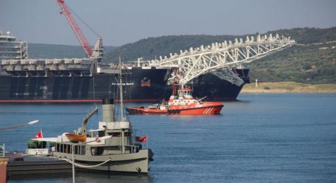 Hollanda'dan Rusya'ya giden dev kablo döşeme gemisi "Pioneering Spirit", Çanakkale Boğazı'ndan geçti.