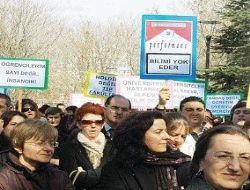 HÜ Tıp Fakültesi Kampüsü’nde toplanan Tıp Fakültesi Öğretim Üyeleri Girişimi yanlısı öğretim üyeleri “Performans sağlığa zararlıdır” sloganı attılar.