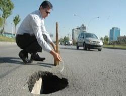 ANADOLU Bulvarı ODTÜ köprüsü altında meydana gelen göçük, sürücülerin zor anlar yaşamasına neden oldu.