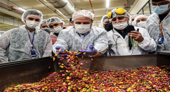 Bayram şekerlerinin üretildiği hatta yılda 15 bin ton ambalajlama yapıldığı ifade edilirken Varank gençlere bayram şekeri ikram etti. Varank ve gençler daha sonra Türkiye’nin ilk kakaolu drajesi olan Bonibon’un üretim süreçlerini inceledi. Çikolataların bulunduğu tavaya draje malzemesi ilave eden Varank, ‘Biz çocuktuk akşam gelirken babam bize getirirdi.” dedi.