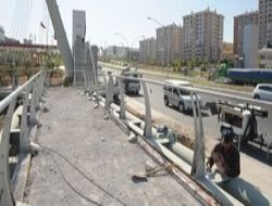 Eskişehir Yolu MEV Koleji önündeki kazalar sonucu tahrip olan yaya üst geçidinin tamiratına başlandı.